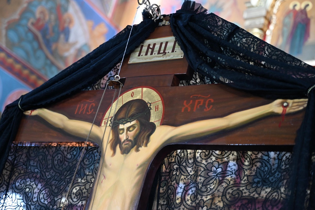 В словах проповеди игумен Иннокентий (Деньщиков) напомнил о смысле Крестной Жертвы Господа нашего Иисуса Христа и Его всеобъемлющей Любви к нам, призвал христиан подражать покаянию Петра и разбойника, подражать Христу в прощении своих врагов и не распинать вновь Господа на Кресте своими грехами.