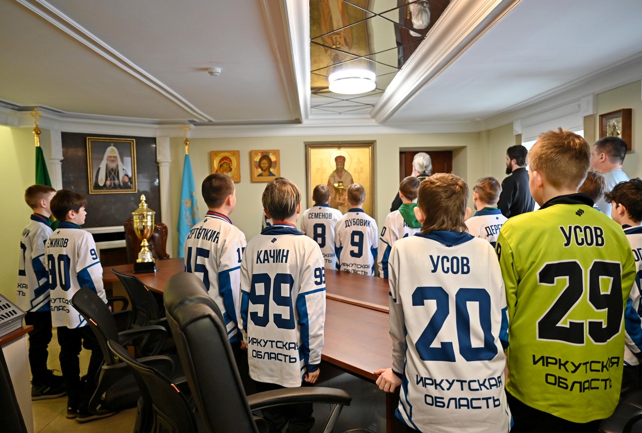 6 марта 2026 года владыка Максимилиан, митрополит Иркутский и Ангарский, в конференц-зале Епархиального управления принял необычных гостей: к владыке пришли игроки иркутской юношеской команды по хоккею с мячом «Сибскана» - победители XVI турнира на приз Святейшего Патриарха Московского и Всея Руси в Москве.
