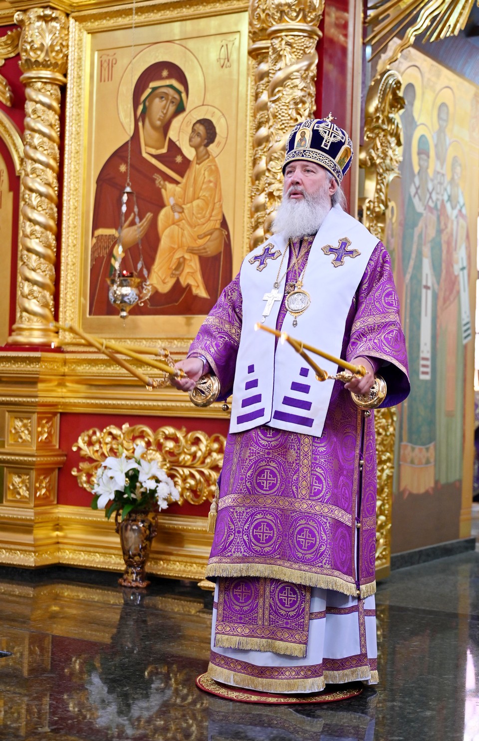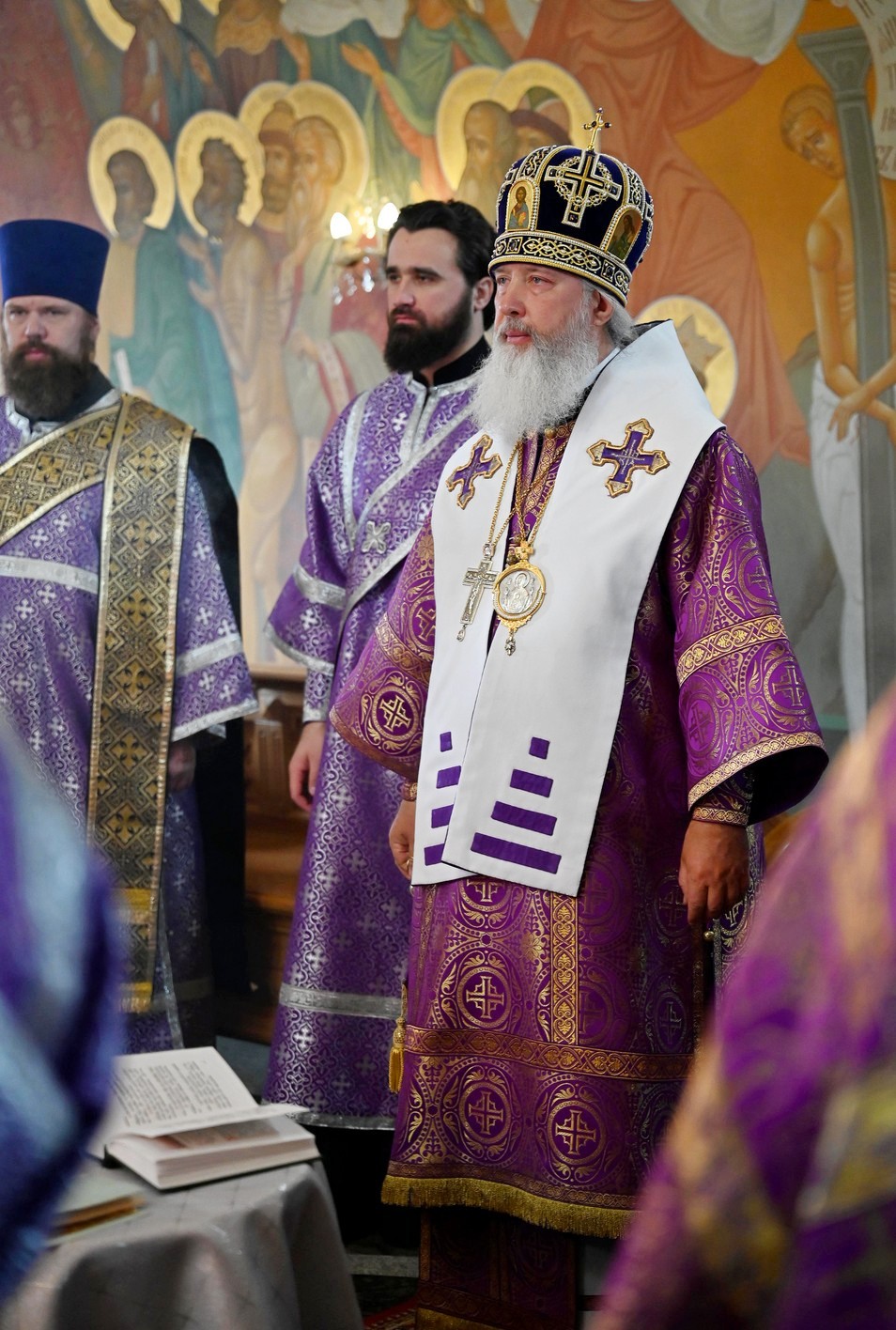 Высокопреосвященнейшему владыке сослужили ключарь собора. секретарь Иркутской епархии священник Стефан Бажков, протоиерей Андрей Тарасов, священник Григорий Гудин, священник Евгений Копытов, священник Вячеслав Куприянов и священник Евгений Евстягин.