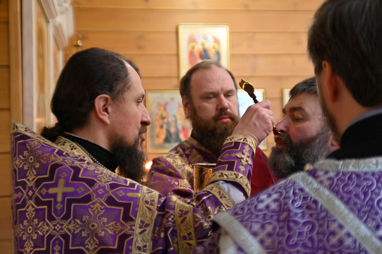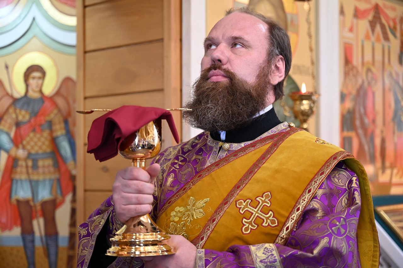 В проповеди перед Причастием священник Олег Буренков, обратившись к словам дневного Евангелия, напомнил о чуде исцеления Господом нашим Иисусом Христом глухого и косноязычного, коего привели к Нему его друзья. Отец Олег подчеркнул, что «мы подобны этому больному, когда по рассеянию отвлекаемся от слушания молитв на Литургии», когда «не поспешаем говорить добрые слова и делать добрые дела». А «наши усопшие близкие и сродники глухи и косноязычны потому, что уже не имеют возможности возносить за себя молитвы ко Господу, ибо для этого нам дано драгоценное время земной жизни». Отец Олег призвал не забывать, что «наша задача - исцелиться и за краткий срок земного существования стать ближе к Богу», не забывая возносить молитвы и об усопших.