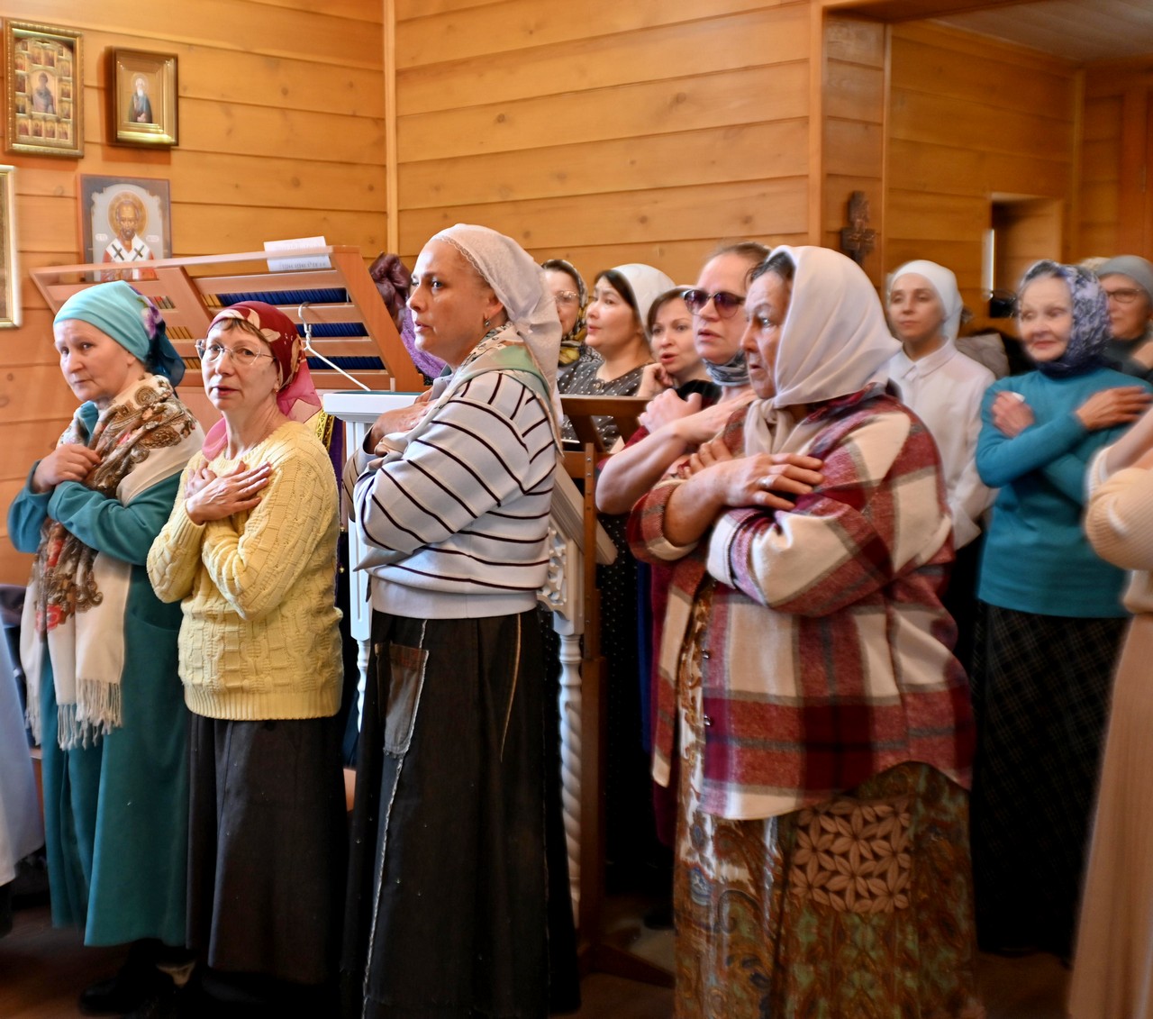 Богослужебные песнопения прозвучали в молитвенном и профессиональном исполнении клироса Петропавловского храма г.Шелехова под руководством матушки Елены Куренковой.