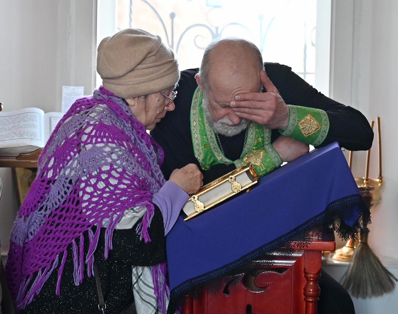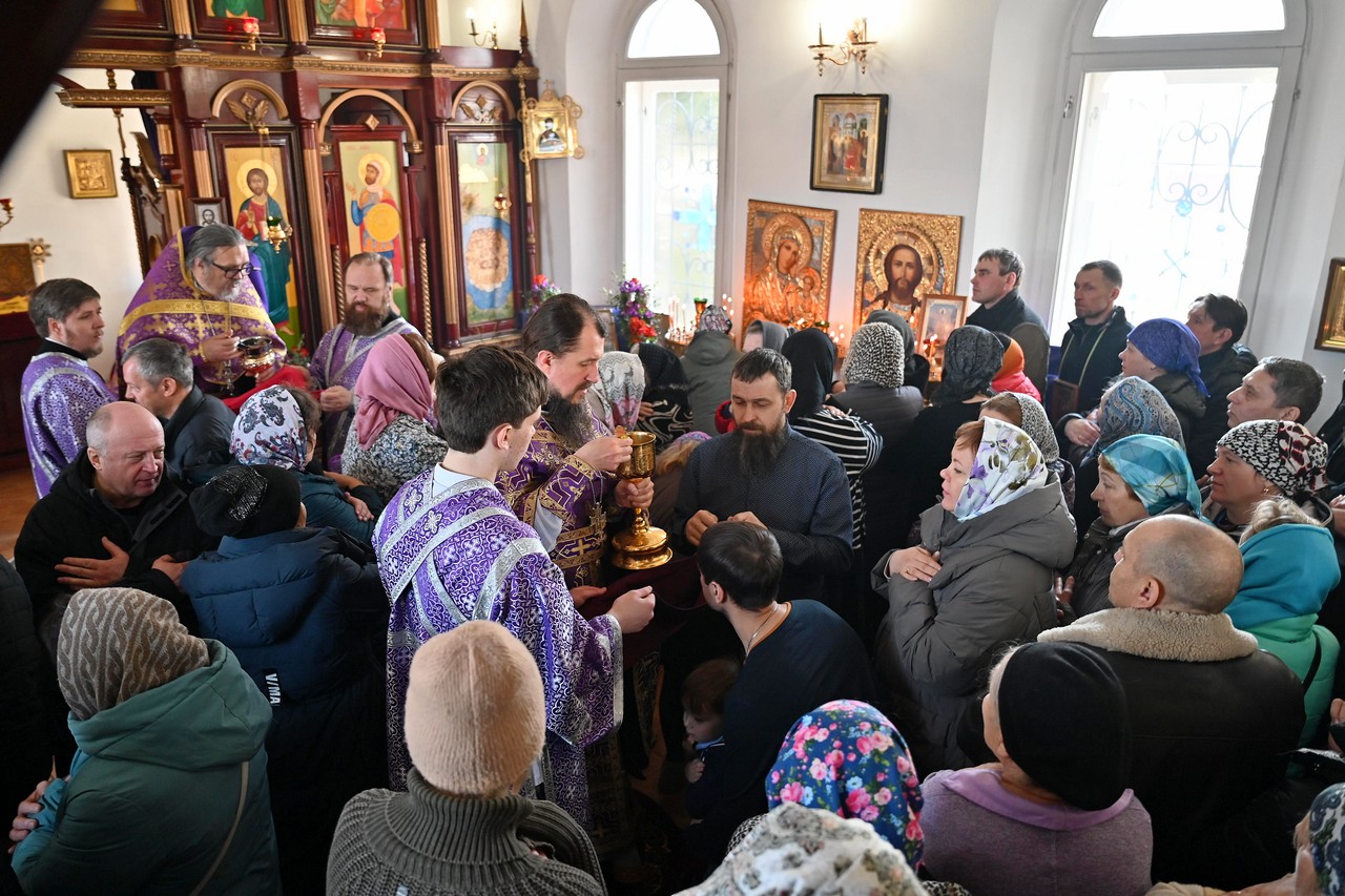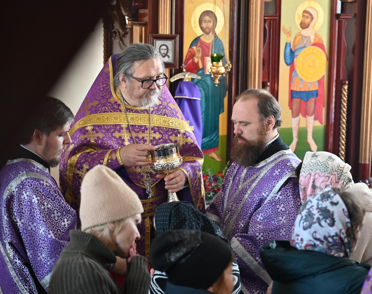 Настоятель храма протоиерей Валерий Некрасов в проповеди ко Причастию остановился на смысле Евангельской притчи, которая читается при служении мученикам-исповедникам, подчеркнув, что мы не должны ждать награды в жизни, что бы мы ни делали, потому что «приходит час - и всякая оброчная плата меркнет перед лицом смерти», потому что «смерть всё уравнивает». И нам надо полагаться на то, что именно Господу решать, кому, сколько и как дать. Ибо каждому Он хочет Царствие Свое Небесное выделить. Бог не чает, чтобы кого-то наказать, ибо Он - Бог любви», а нам необходимо научиться благодарить за всё: за отношение к себе, которого ты достоин или не достоин. За то дело, которое ты делаешь достойно».