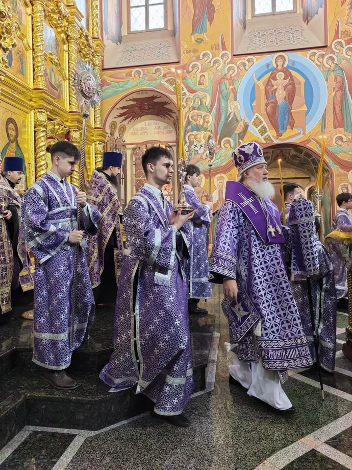 29 марта 2026 года, в Неделю 5-ю Великого поста, преподобной Марии Египетской, митрополит Иркутский и Ангарский Максимилиан возглавил служение Божественной литургии свт.Василия Великого в Богоявленском кафедральном соборе в сослужении братии храма.