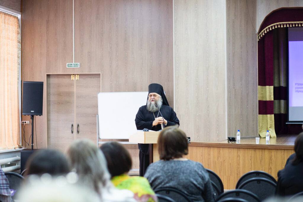 Во вступительном слове владыка подчеркнул значимость роли учителя не просто как транслятора знаний, но как наставника, способного помочь ученикам сформировать гармоничное мировоззрение и глубокое понимание взаимосвязей в окружающем мире.