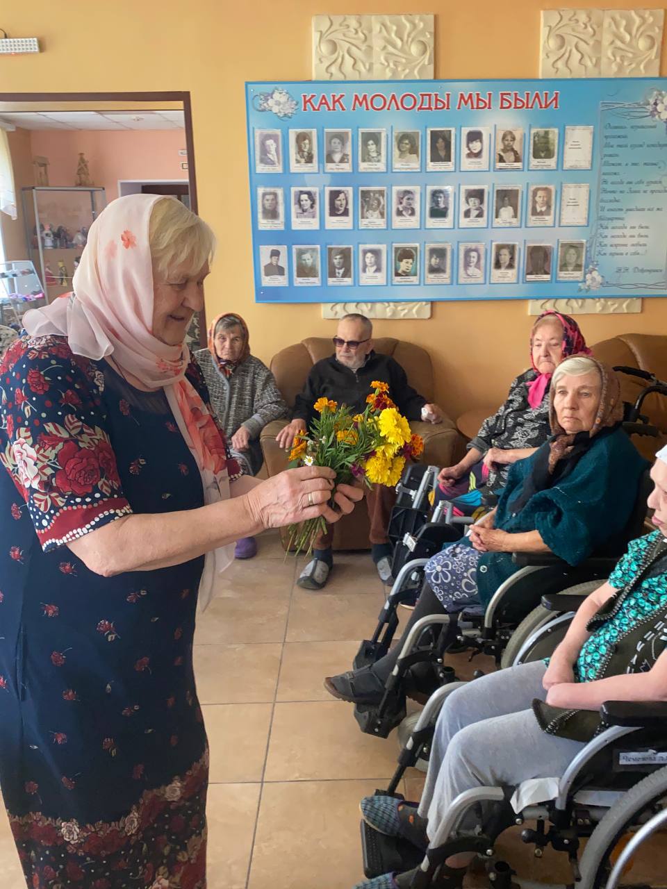 Умилительной традицией, установившейся среди православных христиан, проживающих в этом центре, стало поздравление впервые причастившихся и вручение им небольших букетов цветов. Вроде бы простые цветы с уличных клумб, но насколько дороги и памятны они будут для пожилых людей!
