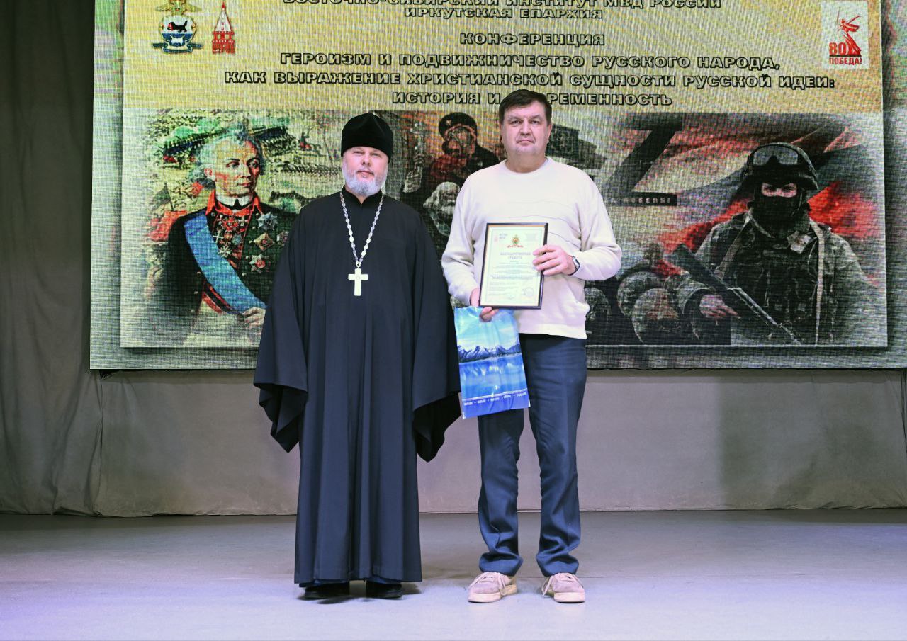 Кроме того, высокий гость из Москвы выступил с докладом и на конференции «Героизм и подвижничество русского народа как выражение христианской сущности русской идеи: история и современность, прошедшей в Восточно-Сибирском институте МВД России г. Иркутска.
