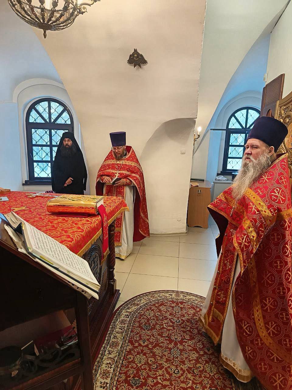 Также за богослужением в алтаре молился иеромонах Савватий (Агеев), настоятель монастыря во имя вмч. Димитрия Солунского в г. Фрамингхем, штат Массачусетс, США.