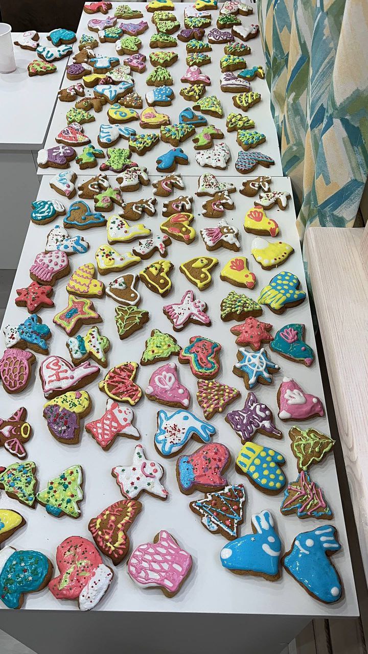 Пока мальчишки постигали секреты приготовления настоящей домашней лапши, девчонки с любовью украшали елку и помещение. А затем все вместе дружно взялись за рождественскую выпечку, расписывая душистые имбирные пряники, и создавали своими руками елочные игрушки из эпоксидной смолы, красивые ёлочки и праздничные композиции из нобилиса.