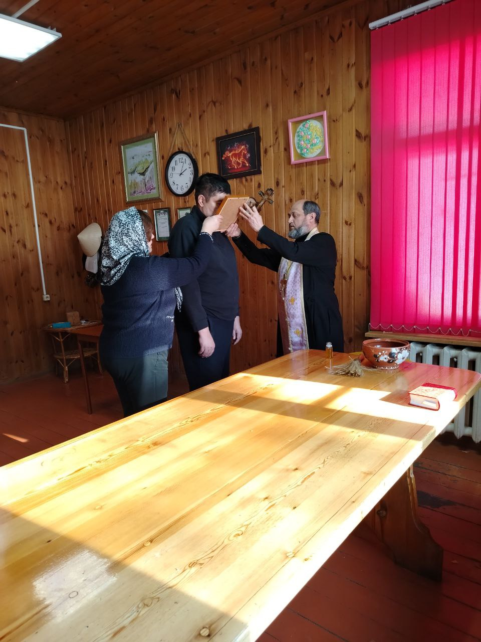 И в этот раз все дружно собирались вместе. Батюшка послужил молебен святой Ксении Петербургской, маслом с часовенки святой Ксении помазал ребят и сотрудников, окропил святой водой помещения, столярные и ткацкую мастерские. А также вручил Крещенскую воду, подарки – игрушки, одежду, продукты.